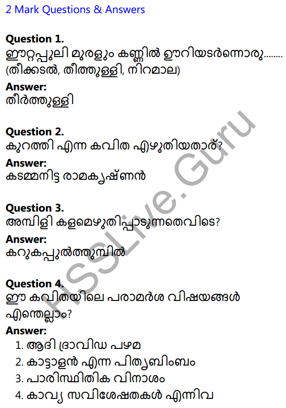 Plus Two Malayalam Textbook Answers Unit 1 Chapter 3 Kirathavritham Hsslive