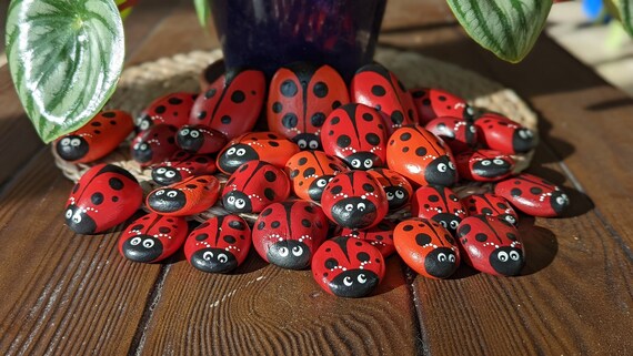 2 Handpainted Ladybug Rocks Garden Decor Ebay